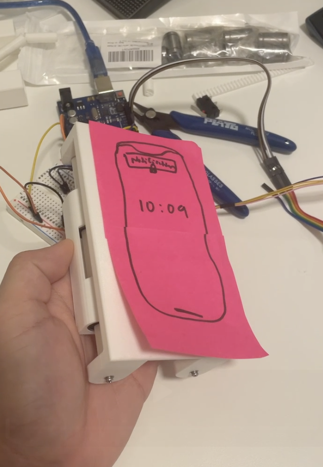 without using both hands. It's just a stepper motor in a weird 3D printed phone case.