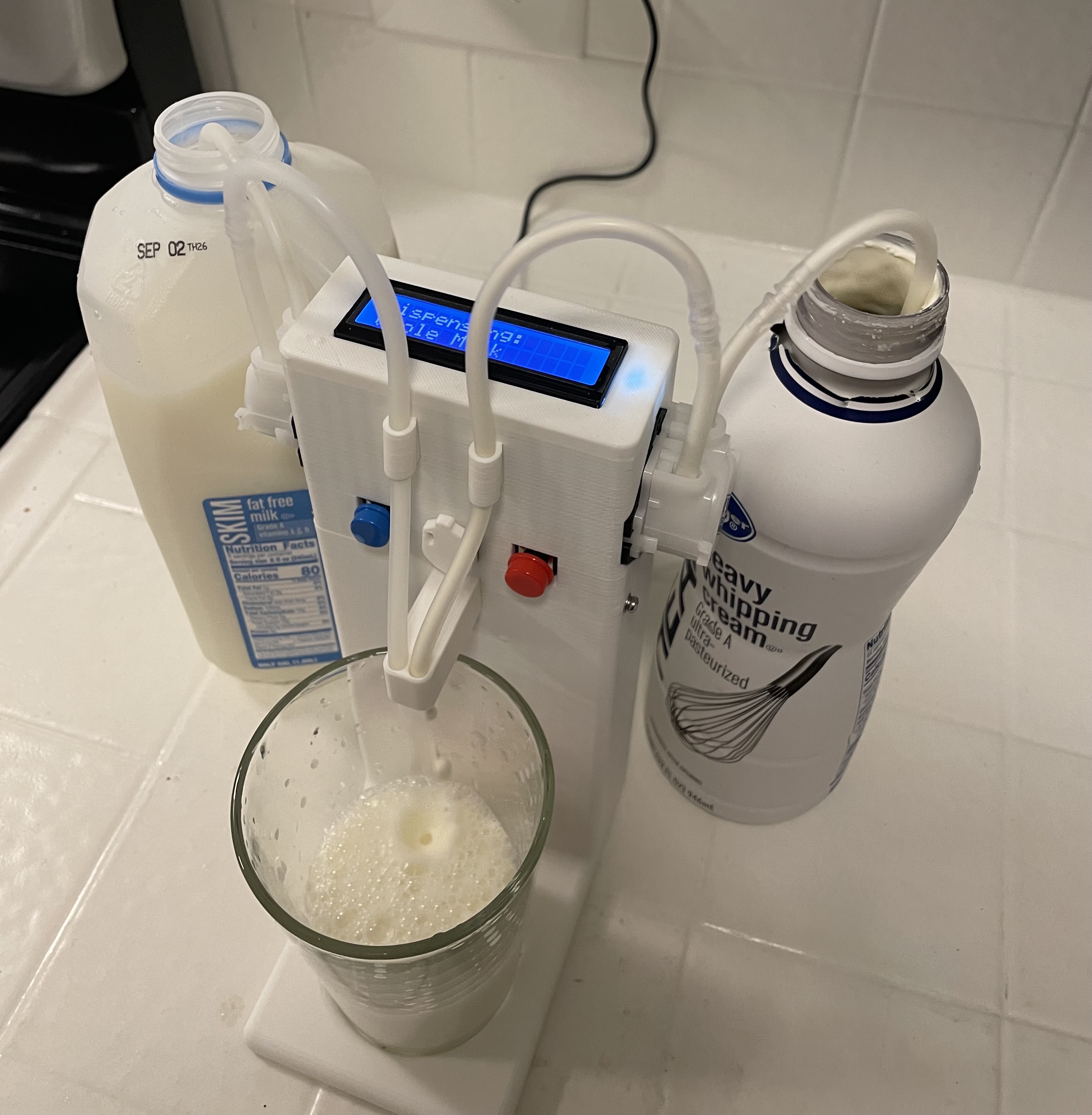 couple of relay-controlled peristaltic pumps and an Arduino in a 3D printed shell.